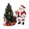 Santa decorating tree (lights up) with dog & cat .. 29cm high