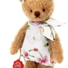 She is a limited edition of 150 pieces & she wears a dress with butterfly & flower print finished at the neck with a matching neck tie & a single strand of white pearls around her neck & 3 little pearls to her ears.